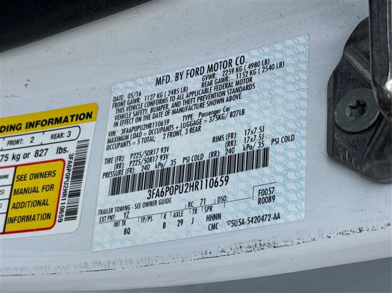 Vehicle Inquiry for 2017 Ford Fusion Energi SE Luxury